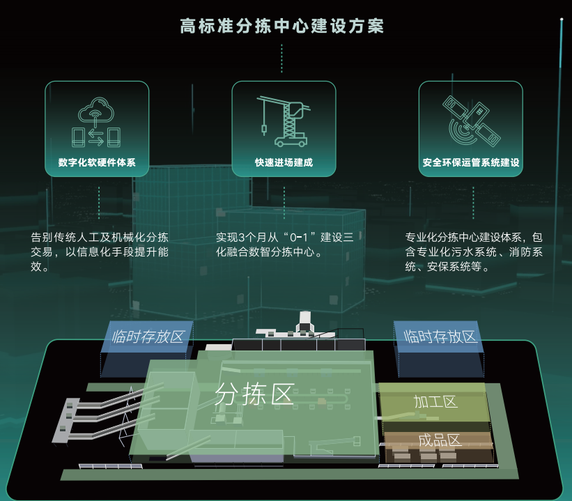 整裝式數(shù)智再生資源綠色分揀中心要由智能化硬件和數(shù)字化軟件構(gòu)成